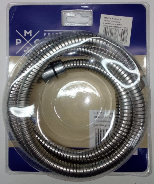 Шланг для душа РМС SH-02 с двойным замком 150-210см нержавеющая сталь