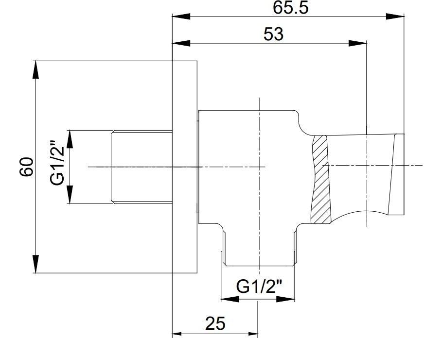 Шланговое подсоединение E.C.A предназначено для использования в ванных комнатах. Модель оснащена защитой от обратного потока. Изделие выполнено из латуни, которая отличается прочностью, долговечностью и устойчивостью к перепадам температуры.Ось подшипника ручного душа 53 мм