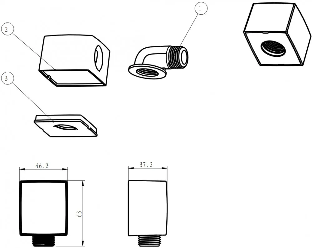 Шланговое подсоединение Aquanet Square AF000-10C для душа, 252254