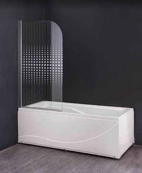 Шторка для ванной Parly F04Размер: 75х130 смМодель из прозрачного закаленного стекла (5 мм) с дизайнерским рисунком. Полотно устойчиво к случайным ударам. В случае битья, стекло рассыпается на множество граней с тупыми концами, о которые невозможно пораниться.Алюминиевый полированный профиль в цвете хром устойчив к образованию коррозии, не деформируется при перепадах температуры и высокой влажности.Модель крепится к стене. Распашная дверь открывается наружу и во внутрь.Шторка – универсальная, подходит для установки на правую и левую сторону.Достоинства стеклянной шторки для ванны:Защищает ванную комнату от брызг воды. Пол возле ванны остается сухим, что снижает шансы поскользнуться после водных процедур.Стильный дизайн дополнит оформление ванной комнаты,Шторки из стекла практичны, долговечны и гигиеничны. По сравнению с тканными аналогами, на стеклянных моделях не скапливаются бактерии и грязь, полотно легче чистить.