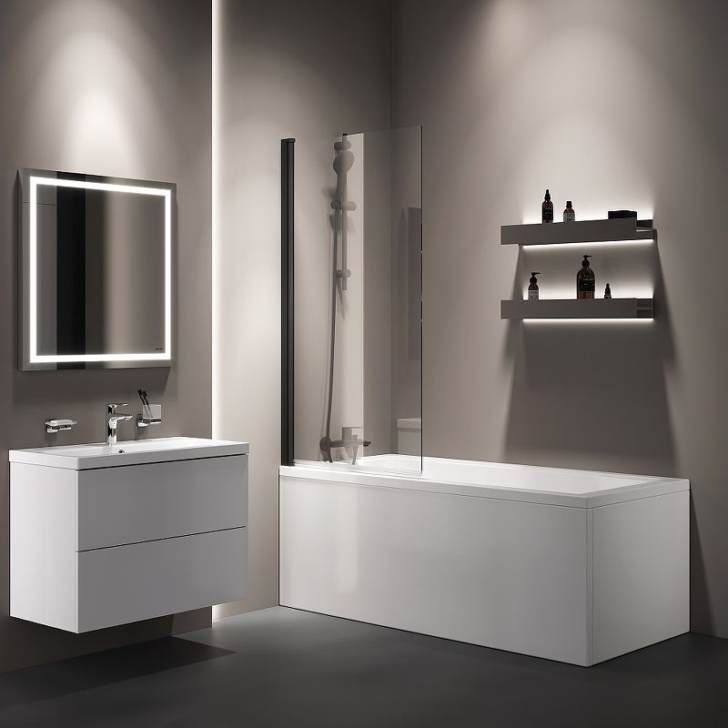 Шторка на ванну AM.PM Gem 80 W90BS-D080-140BT профиль Черный матовый стекло прозрачное купить