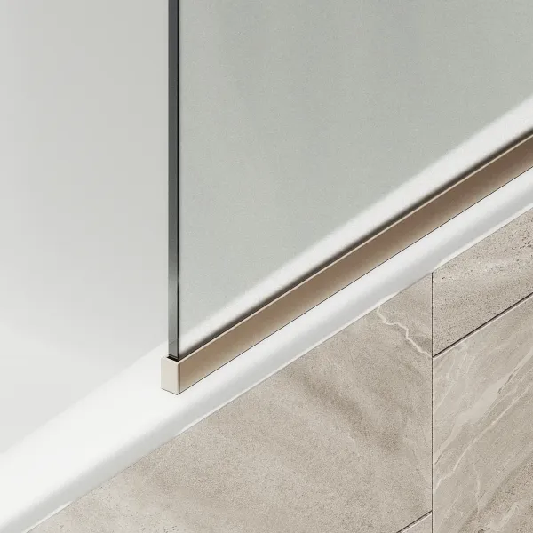 Монтаж осуществляется с помощью алюминиевого профиля, что обеспечивает надежность крепления и безопасность использования стеклянной перегородки для ванной. Также, шторка оснащена специальным уплотнителем, который предотвращает попадание воды на пол ванной комнаты. Закаленное стекло, цвет Сатин, толщина 6 мм 1400х440 мм - 1 шт.