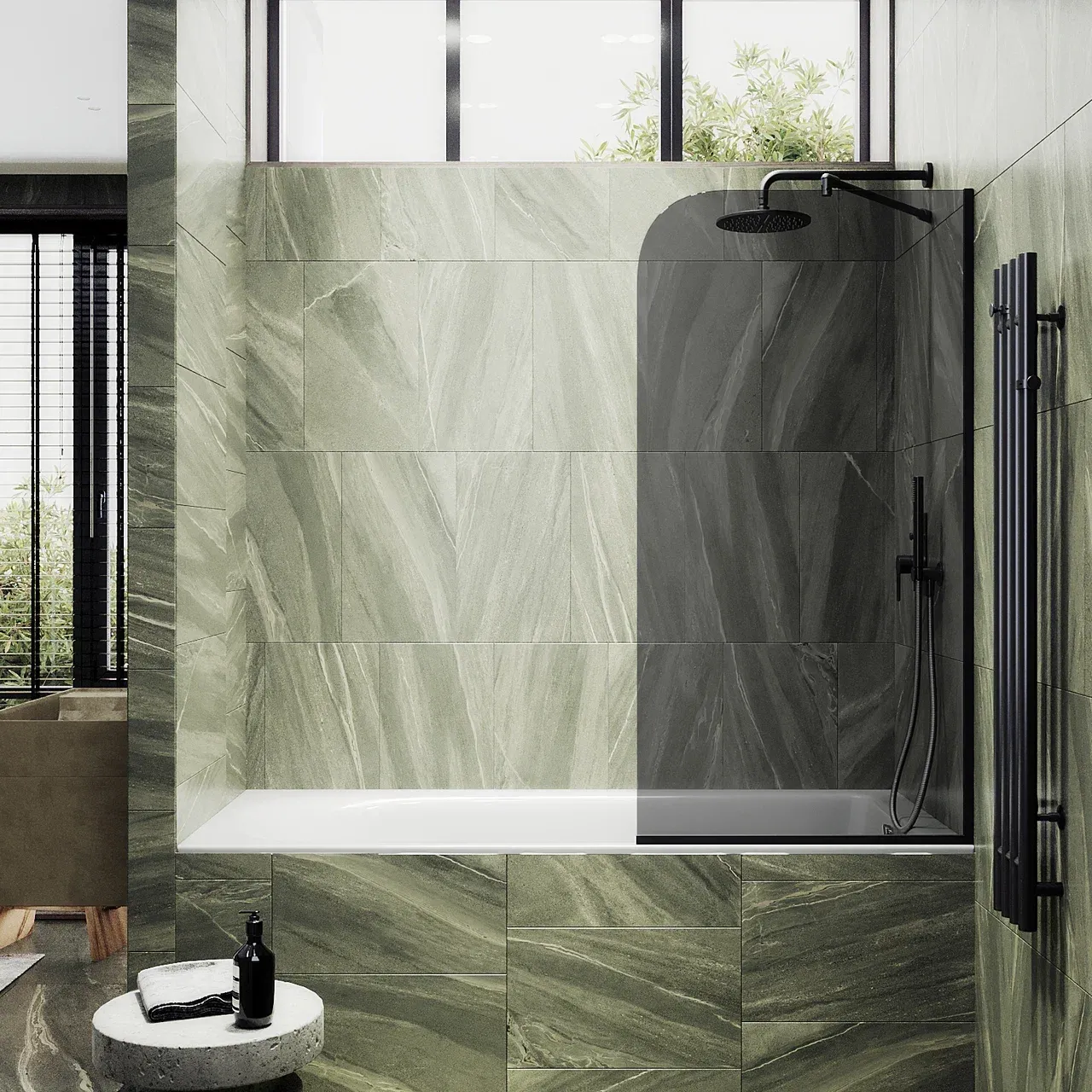 Монтаж осуществляется с помощью алюминиевого профиля, что обеспечивает надежность крепления и безопасность использования стеклянной перегородки для ванной. Также, шторка оснащена специальным уплотнителем, который предотвращает попадание воды на пол ванной комнаты. Закаленное стекло, цвет Графит,толщина 6 мм 1400х640 мм - 1 шт.