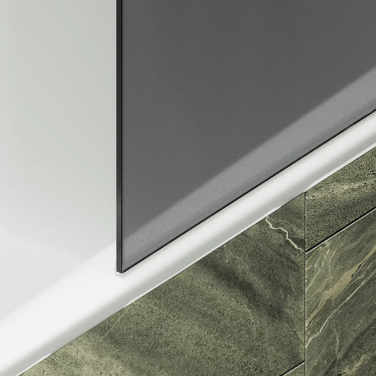 Монтаж осуществляется с помощью алюминиевого профиля, что обеспечивает надежность крепления и безопасность использования стеклянной перегородки для ванной. Также, шторка оснащена специальным уплотнителем, который предотвращает попадание воды на пол ванной комнаты. Закаленное стекло, цвет Графит матовый, толщина 8 мм 1400х300 мм - 1 шт.