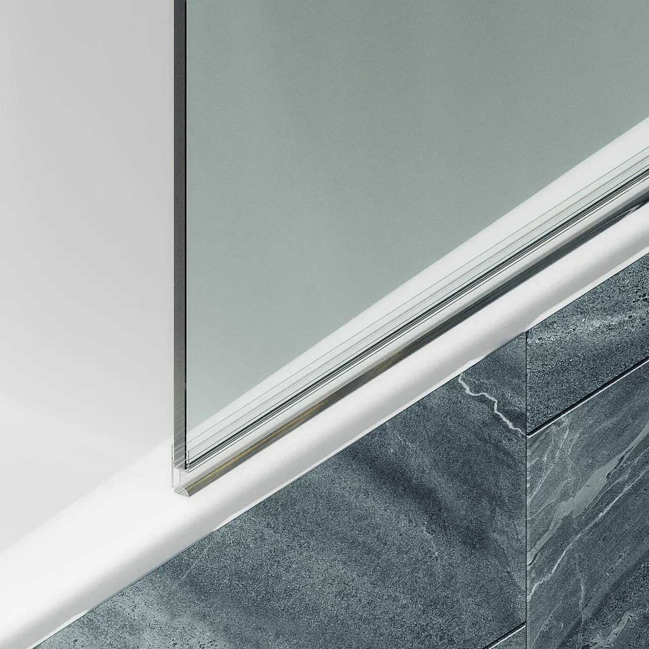 Монтаж осуществляется с помощью алюминиевого профиля, что обеспечивает надежность крепления и безопасность использования стеклянной перегородки для ванной. Также, шторка оснащена специальным уплотнителем, который предотвращает попадание воды на пол ванной комнаты, а также поворотным механизмом, что облегчает уход за сантехникой и делает использование ширмы максимально комфортным. Закаленное стекло, цвет Бесцветный, толщина 6 мм 1400х640 мм - 1 шт.