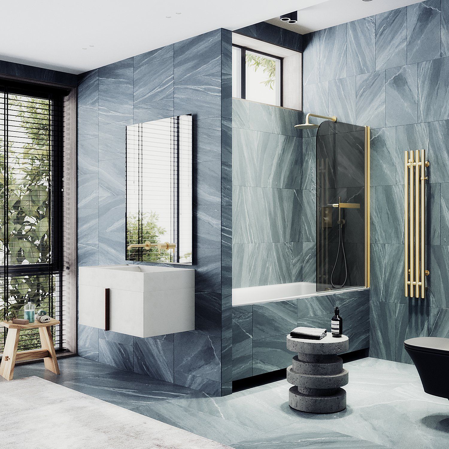Шторка на ванну MaybahGlass MGV-767-3 40см золото купить