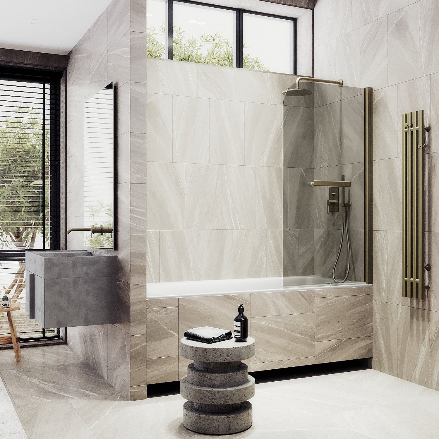 Стеклянные шторки для ванны на монопетле – это стильное и функциональное дополнение для Вашей ванной комнаты. Они изготовлены из закаленного стекла, что делает их прочными и долговечными. Монопетля обеспечивает удобное открывание и закрывание шторки, а также надежную фиксацию ее на ванне. Такие шторки легко моются и не боятся воздействия воды, что делает их идеальным выбором для ванной комнаты. Полотенцесушитель, интегрированный в стеклянную шторку, позволяет быстро высушить полотенца и другие текстильные изделия. Закаленное стекло, цвет бронза, толщина 6 мм 1400х640 мм - 1 шт.