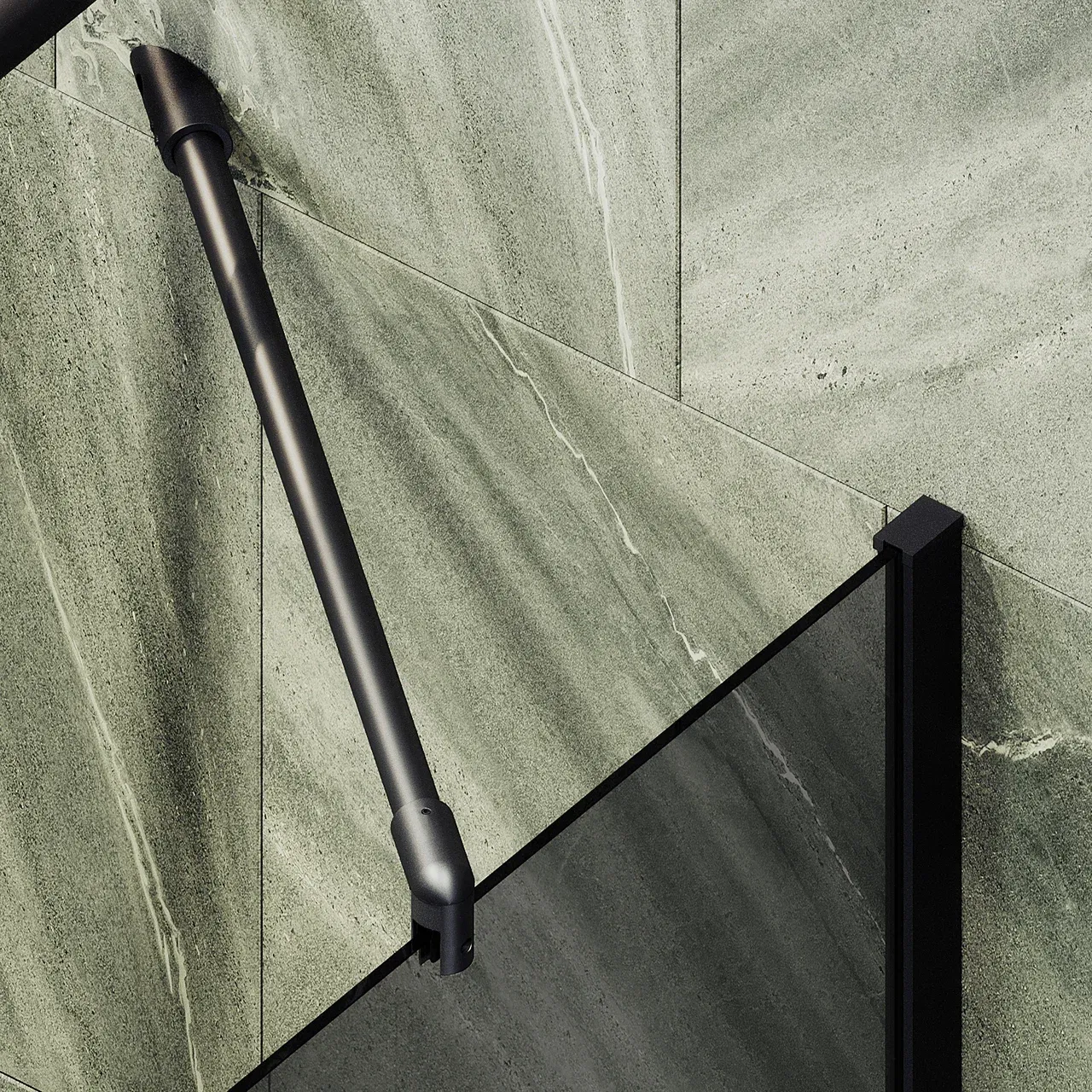 Монтаж осуществляется с помощью алюминиевого профиля, что обеспечивает надежность крепления и безопасность использования стеклянной перегородки для ванной. Также, шторка оснащена специальным уплотнителем, который предотвращает попадание воды на пол ванной комнаты. Закаленное стекло, цвет Графит, толщина 8 мм 1400х700 мм - 1 шт.