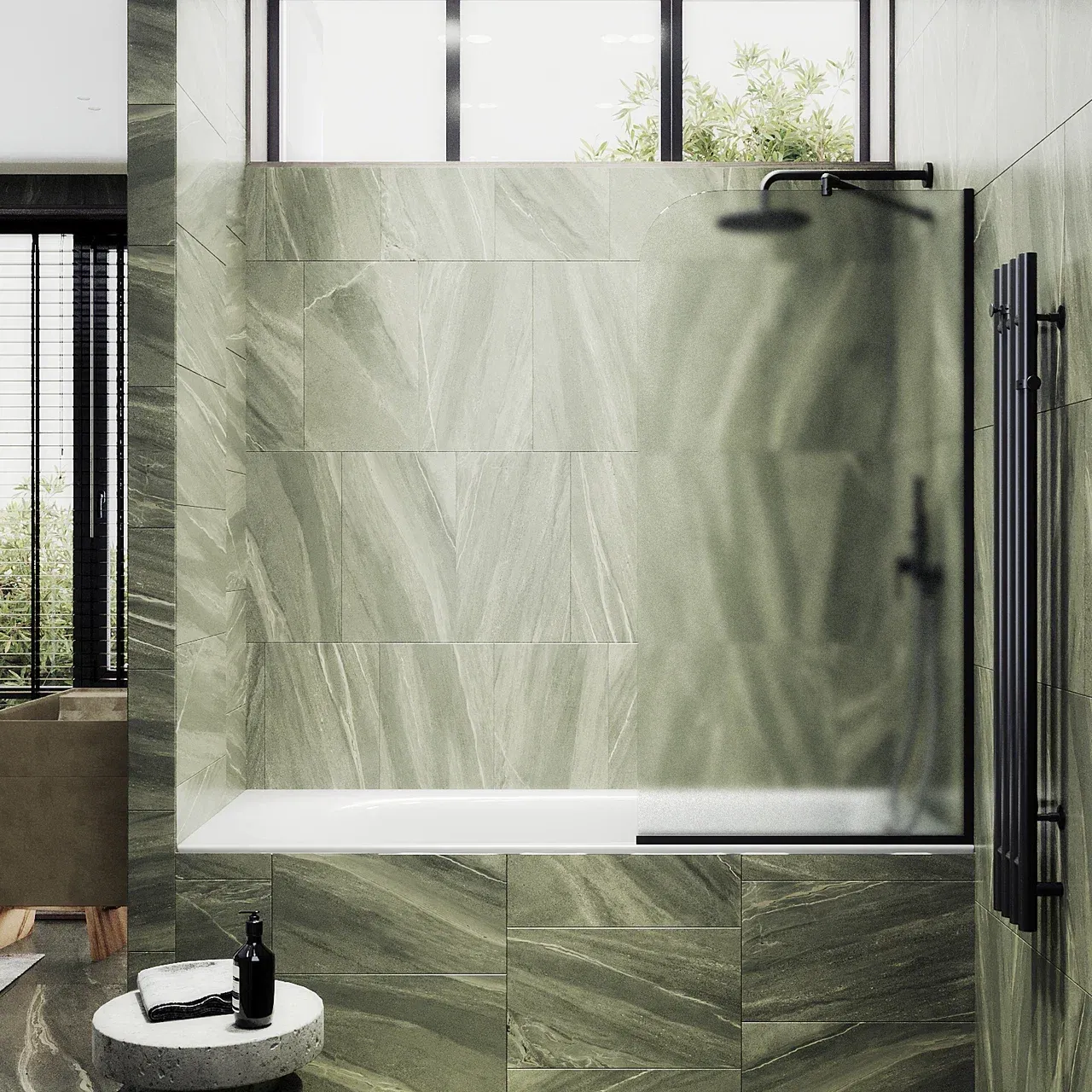 Монтаж осуществляется с помощью алюминиевого профиля, что обеспечивает надежность крепления и безопасность использования стеклянной перегородки для ванной. Также, шторка оснащена специальным уплотнителем, который предотвращает попадание воды на пол ванной комнаты. Закаленное стекло, цвет Сатин,толщина 8 мм 1400х900 мм - 1 шт.