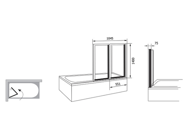 Две ее подвижные части можно вместе сложить вовнутрь ванны. Повернув крайнюю подвижную часть шторы вовнутрь ванны, можно создать еще более практичное душевое пространство.Материал полотна двери:полистирол