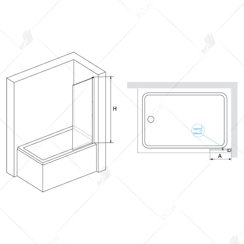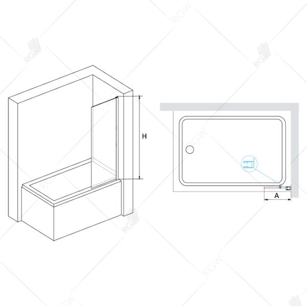 - Высота стеклянной шторки: 1500 мм;