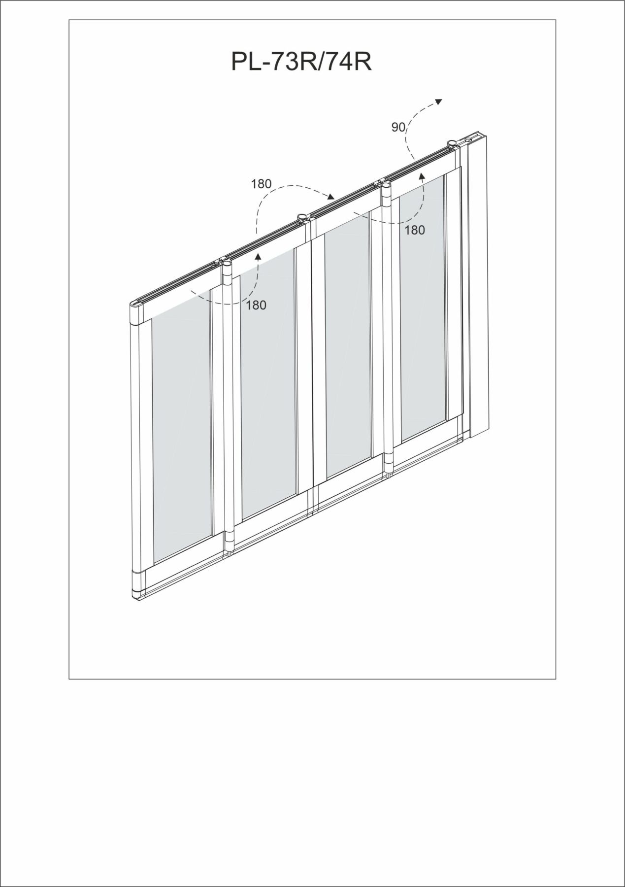 Шторка на ванну складная правая Veconi Palau, PL-73BR, 900x1500, черный матовый, прозрачное стекло