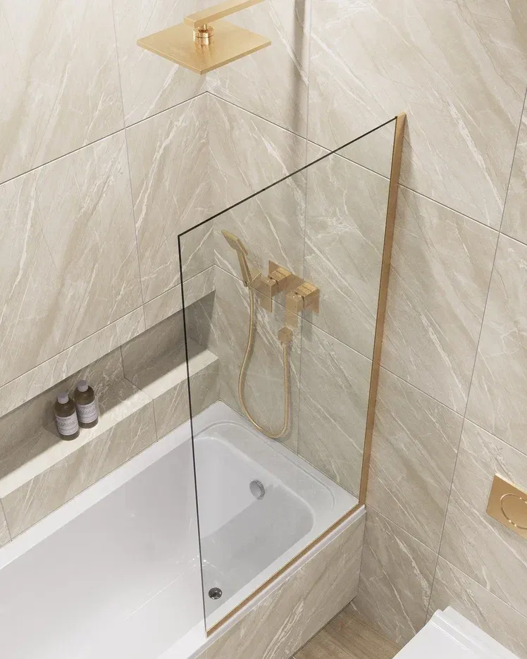 Шторка на ванну в профиле by Deonria C-140-60-8-T-G 60см золото/прозрачный купить