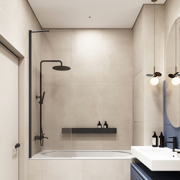Шторка на ванну Veconi Palau PL-84B, 1000x1500, черный, стекло прозрачное купить