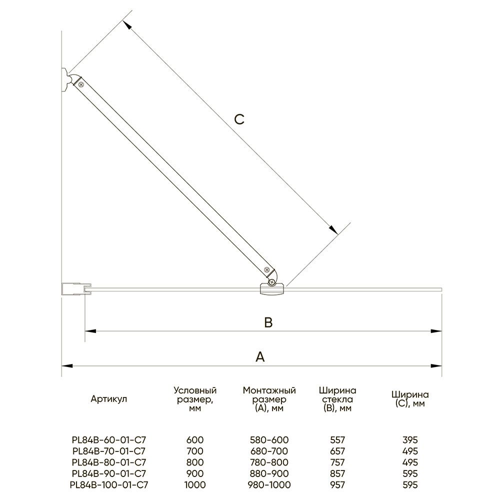 Шторка на ванну Veconi Palau PL-84B, 1000x1500, черный, стекло прозрачное