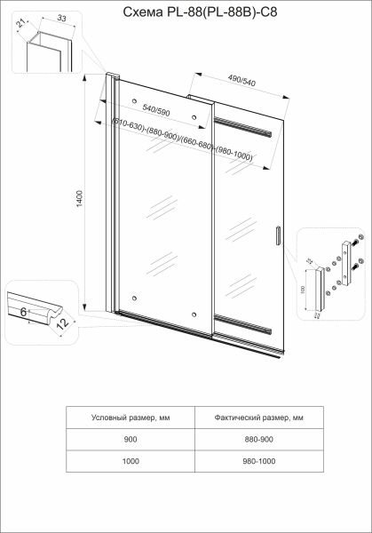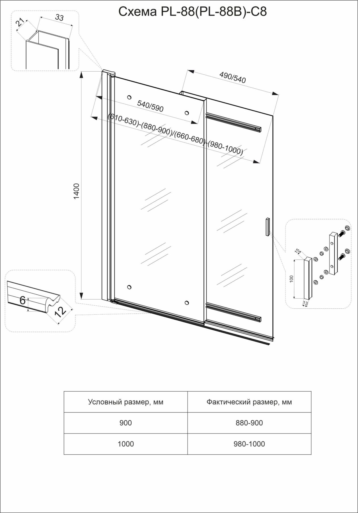 Шторка на ванну Veconi Palau PL-88B, 900x1400, черный, стекло прозрачное