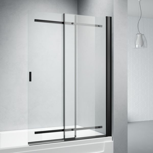 Шторка на ванну Veconi Palau PL-88B, 900x1400, черный, стекло прозрачное купить