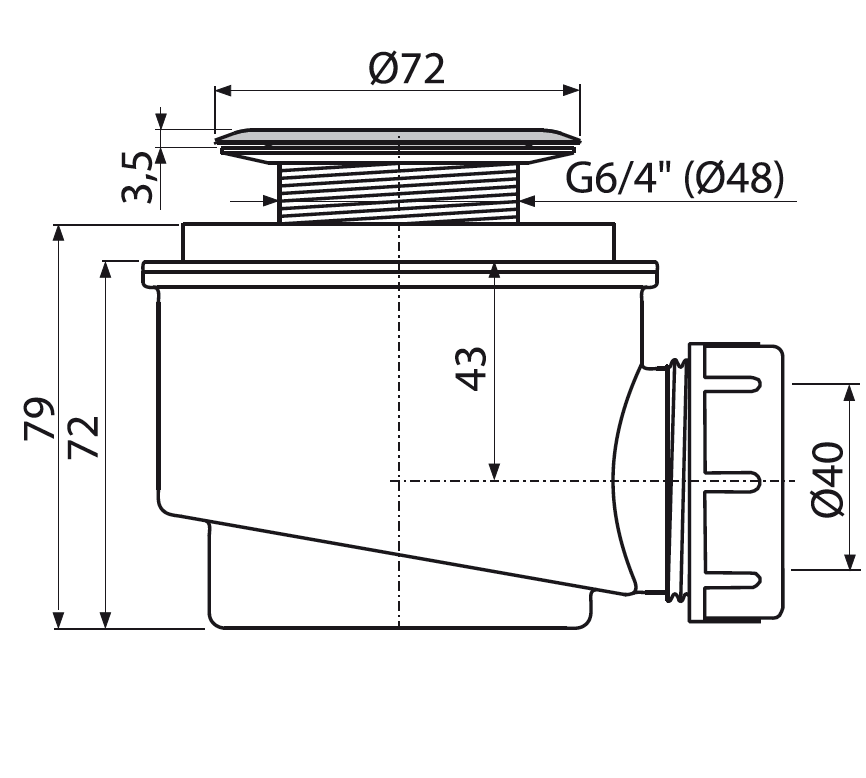 - Для душевых поддонов со сливным отверстием Ø52 мм