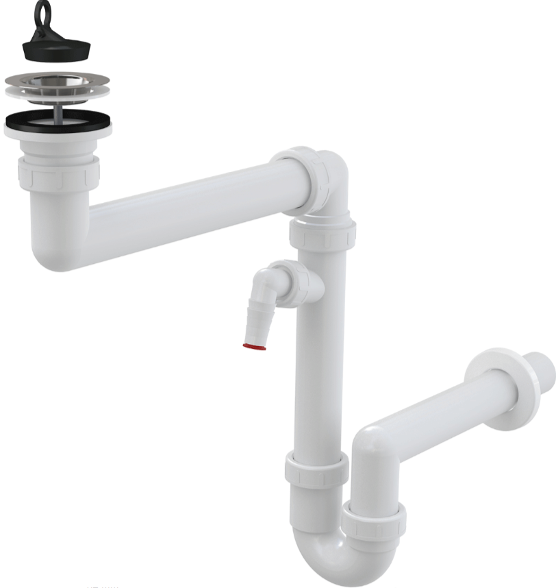 Сифон для мойки AlcaPlast экономящий пространство с подводкой A870P-DN40