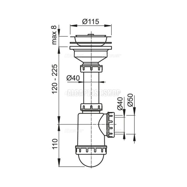 Сифон для мойки AlcaPlast с нержавеющей решеткой ?115 без штуцера A446-DN50/40