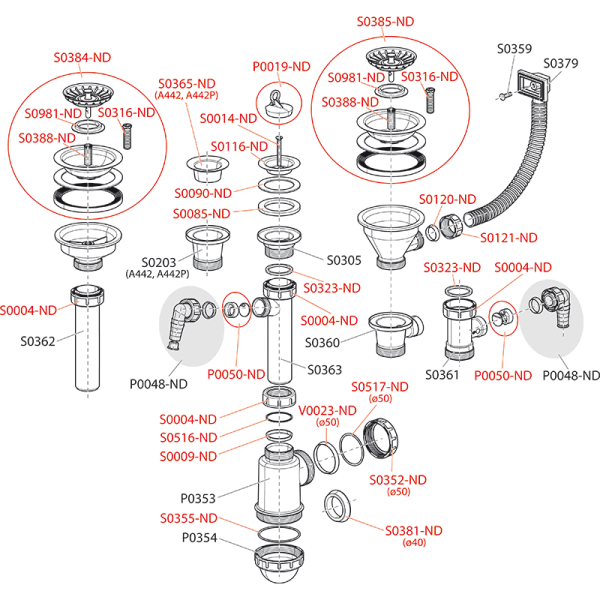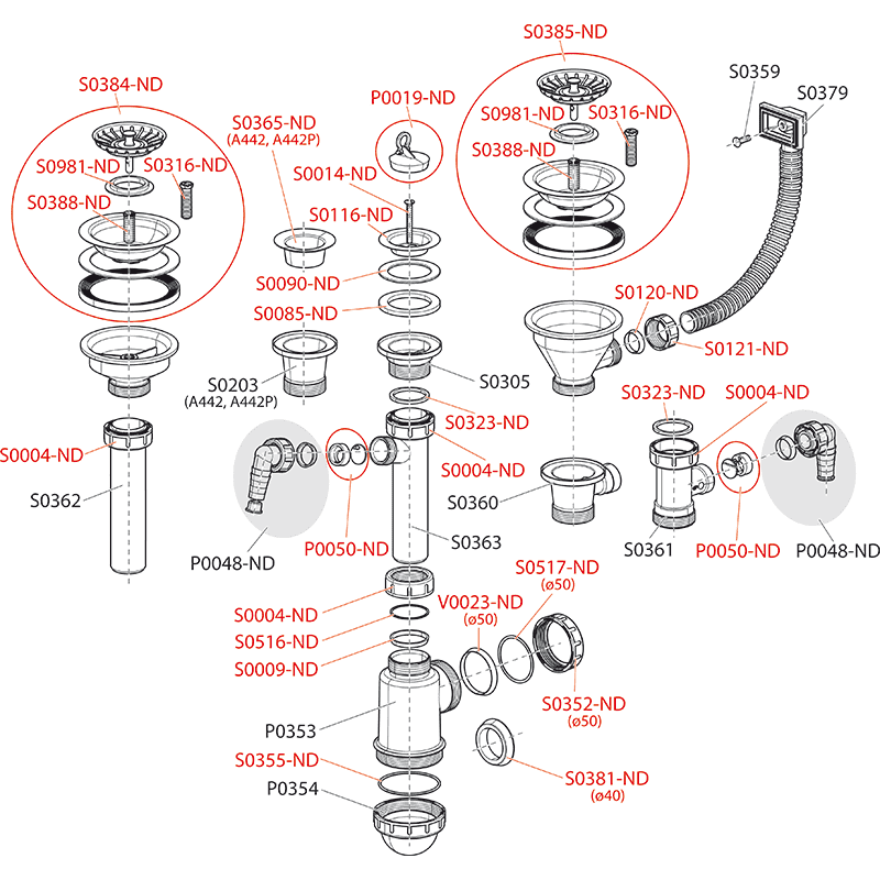 • Возможность подключения сливной трубы Ø50 мм или Ø40 мм
