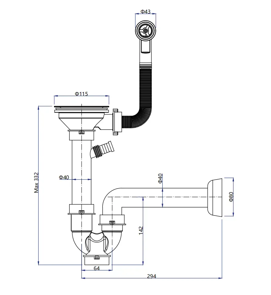 Сифон для мойки GranFest 12PB2-P2A черн купить