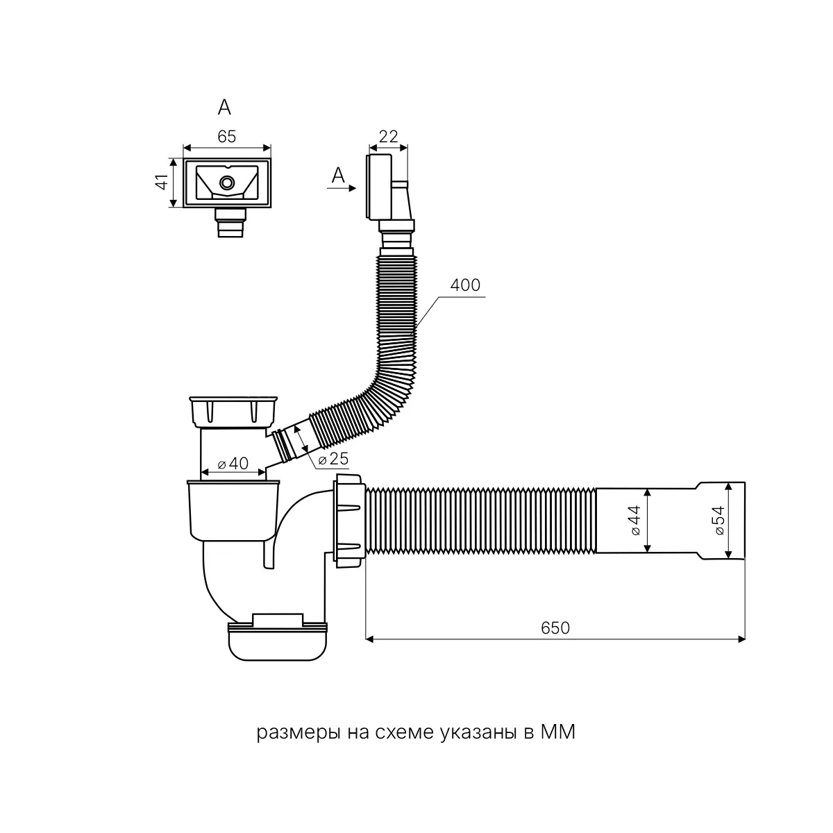 Комплектация: сифон, слив, перелив