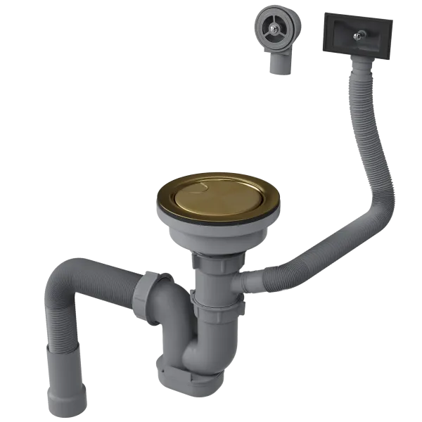Сифон для одночашевой кухонной мойки с выпуском Reflexion Arno RX3001GD брашированное золото