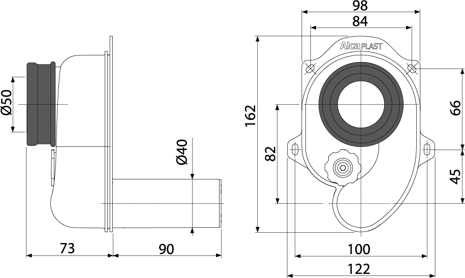 Сифон для писсуара AlcaPlast горизонтальный A45B