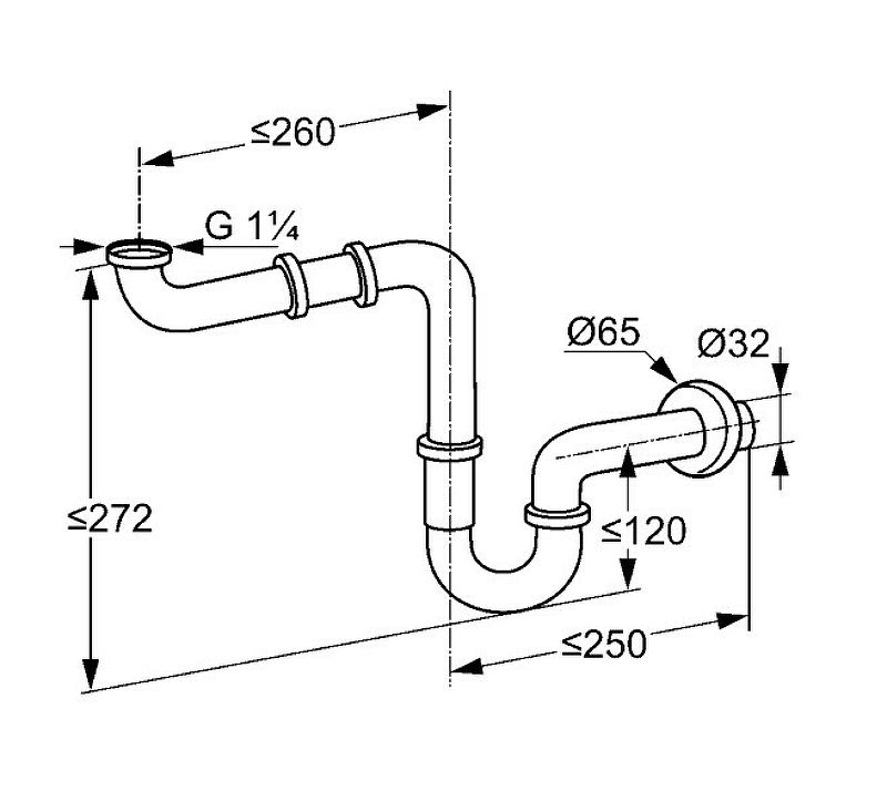 - сифон G 1 1/4 (монтаж в труднодоступных местах)