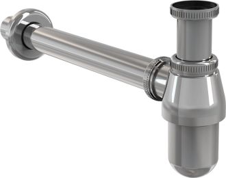 Сифон А431 от чешской компании AlcaPlast превосходно впишется в интерьер ванной комнаты, органично сочетаясь с другими предметами сантехники. Цельнолитое изделие произведено из латуни с хромовым покрытием, устойчивым к механическим повреждениям и воздействию температур до 95 °С. Оно легко устанавливается благодаря возможности регулирования по высоте на 5 см, снимается и чистится. Не допустить распространение токсичных запахов из канализации позволяет гидрозатвор.Габариты (В Д): 18x33 см