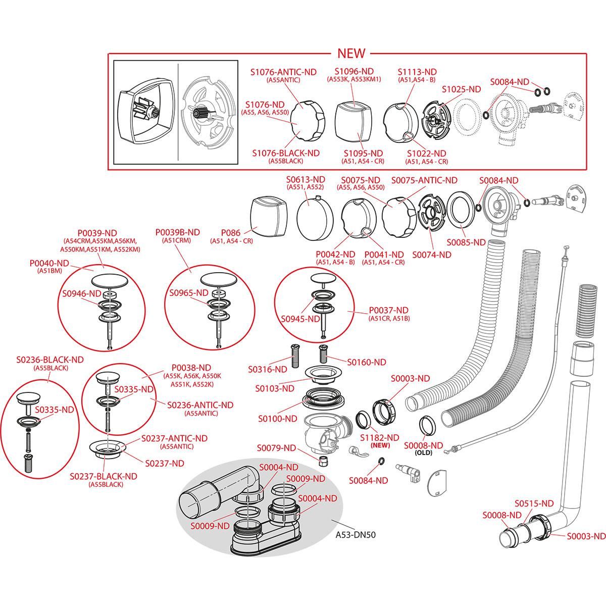 • Для ванн со стоковым отверстием Ø52 мм