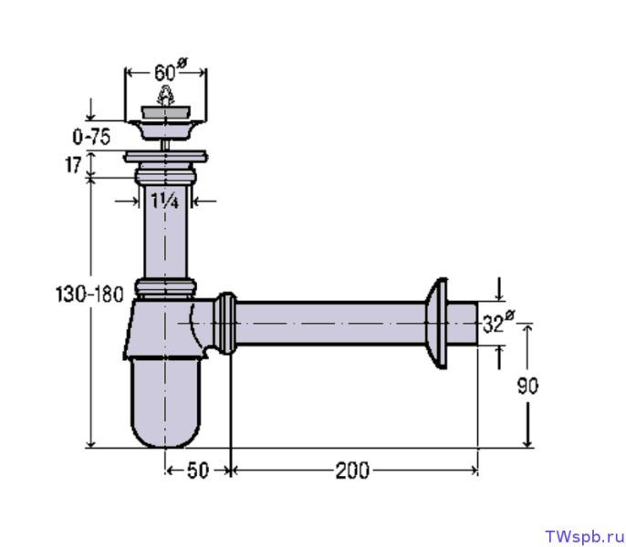 - Компактный монтаж, потому что сливной отвод прикручивается к сливу напрямую без регулировочной трубы