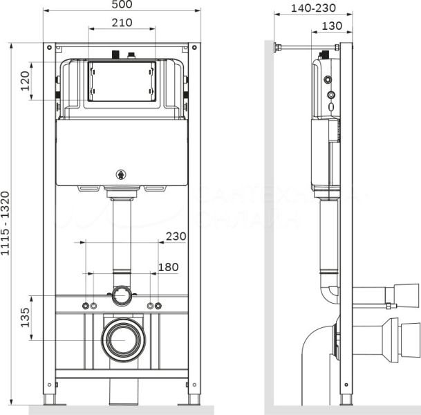 Оснащение: смывной бачок / звукоизолирующая прокладка