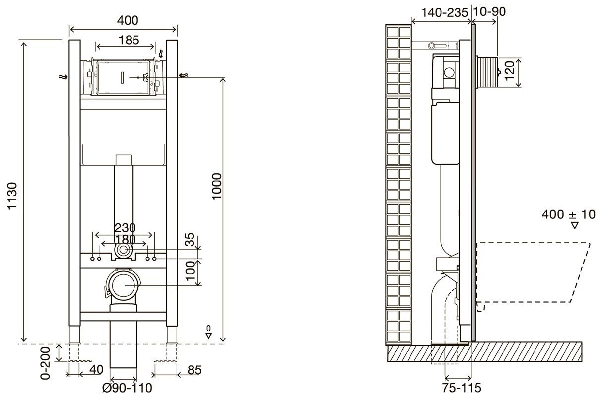 Инсталляция для унитаза Jacob Delafon 40 см, E33131RU-NFУгловая установка : Крепления позволяют установить систему инсталляции в угол