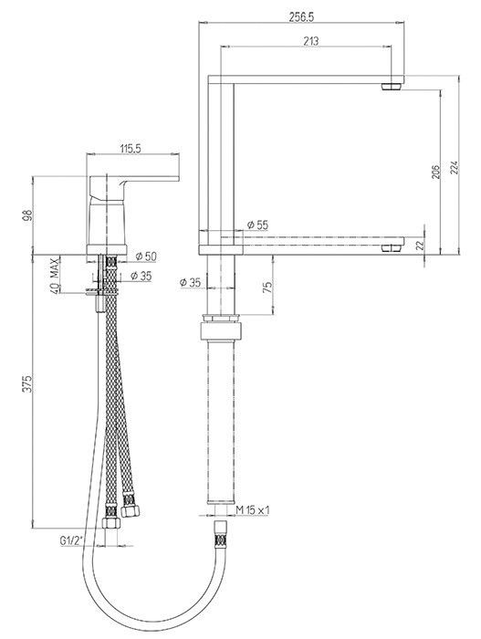 использования смесителя. Отдельно стоящий рычаг управления упрощает уборку и