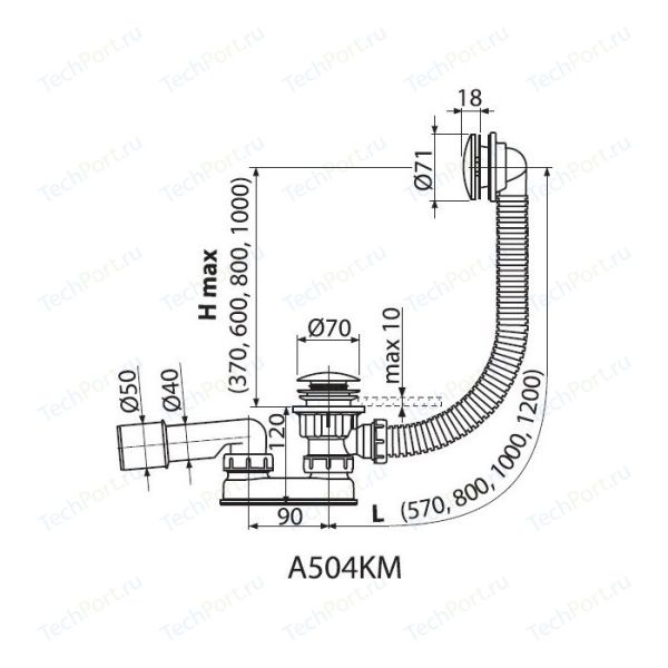 Слив-перелив для ванны AlcaPlast клик-клак 100см хром A504KM-100 купить