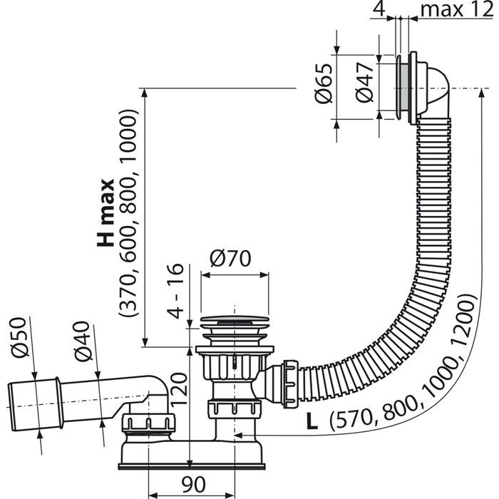 - Для ванн с выпускным отверстием Ø52 мм
