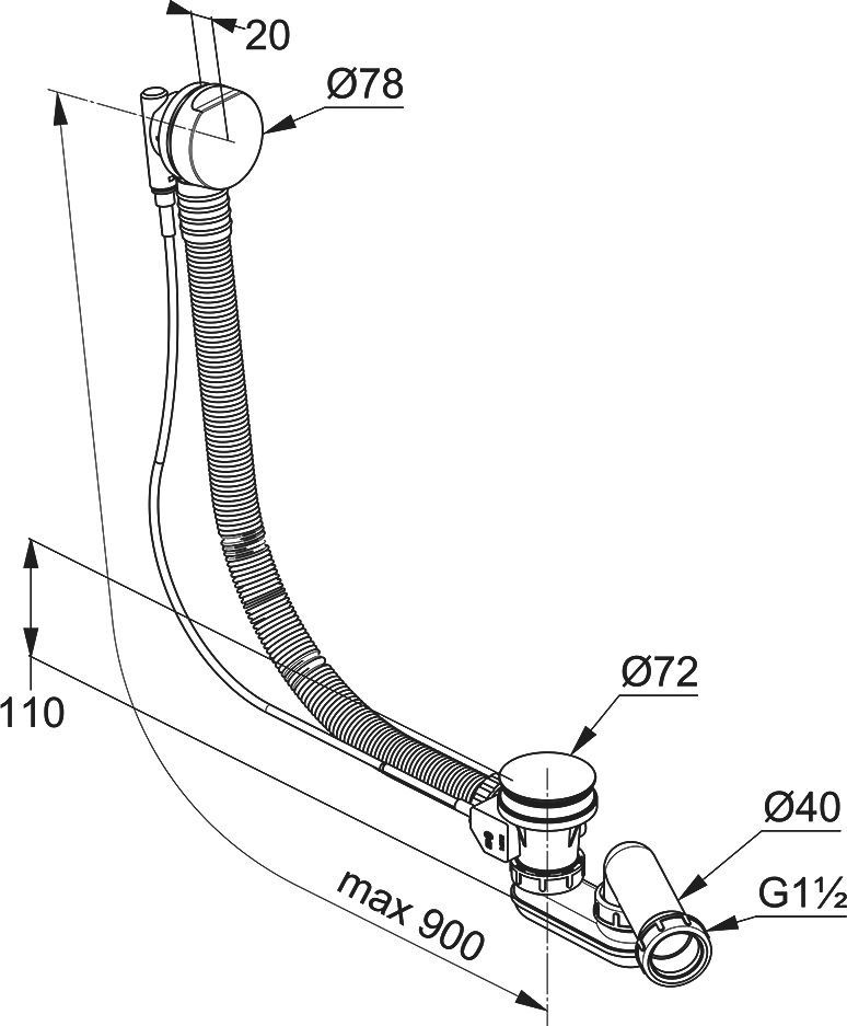 Слив-перелив для ванны Kludi Rotexa 2000 хром 2140905-00