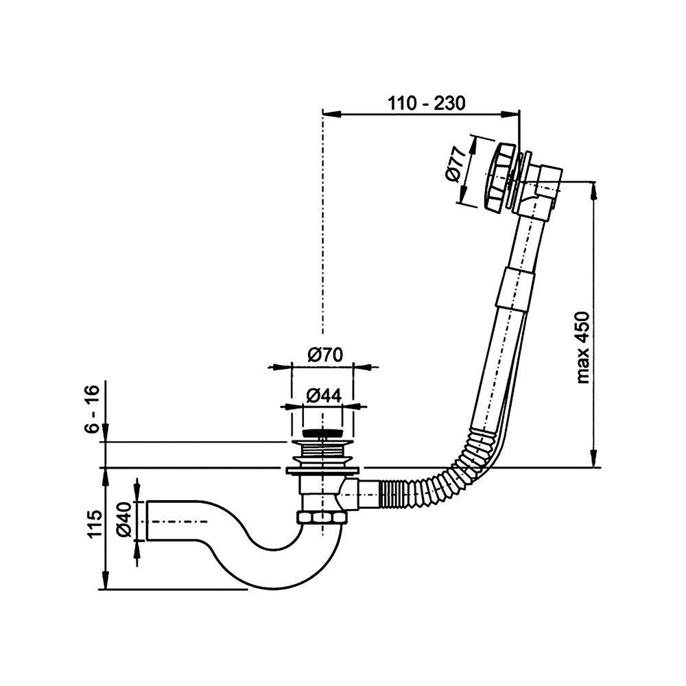 - Корпус слив перелив с раздвижной соединительной трубкой (латунь, медь) - 1 шт.