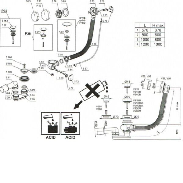 Слив перелив для ванны Vega 60 см с накладками слива и перелива в цвете белый матовый (накладки металлические).