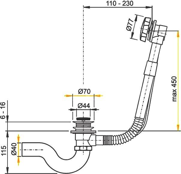 Полуавтоматический слив (тросик) управляется поворотом крышки перелива, соединенной тросиком с пробкой слива