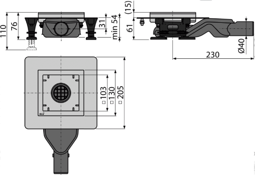 Сливной трап AlcaPlast 130?130мм из нержавеющей стали без решетки APV110