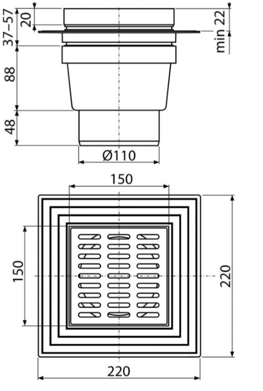 Сливной трап AlcaPlast 150 ? 150/110мм воротник – 2-х уровневая изоляция решетка - хром APV13 купить