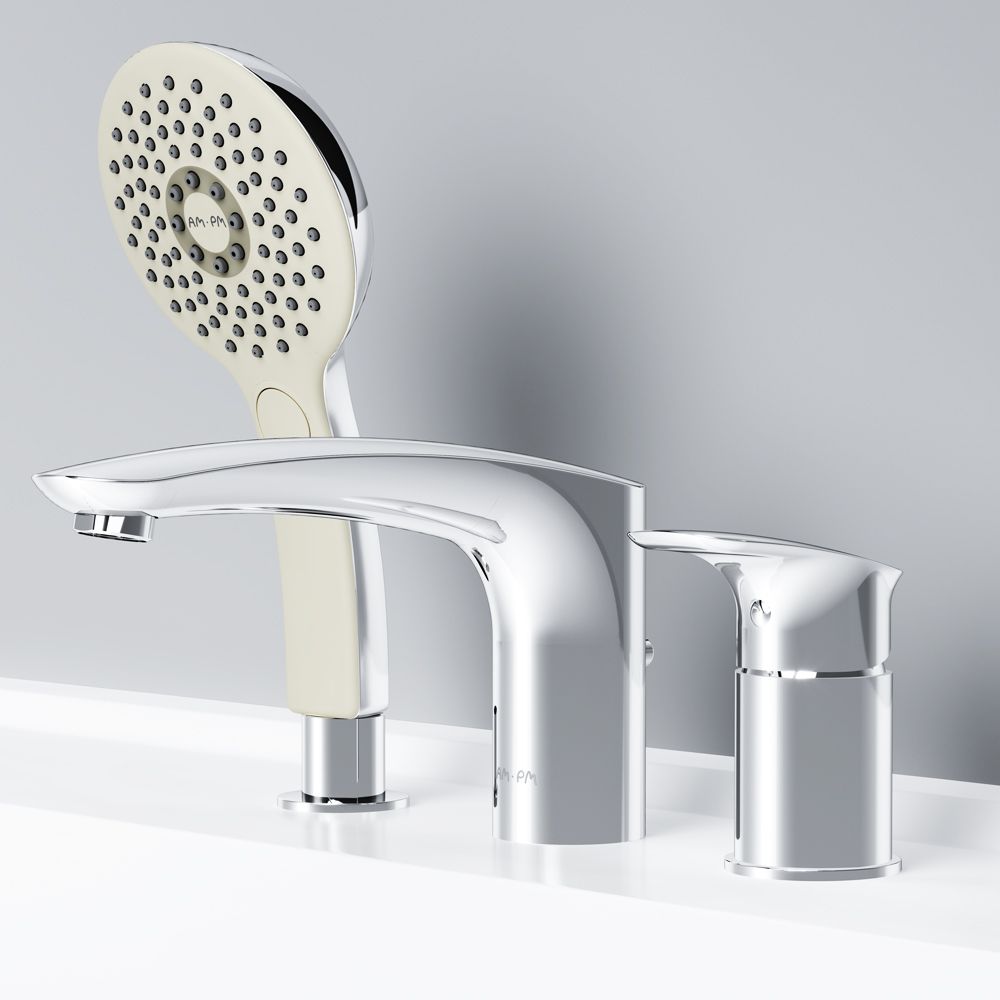 Инновационное пополнение коллекции Inspire V2.0: трехсекционный смеситель на борт ванны в неповторимом дизайнерском решении для тех, кто идет в ногу со временем.Уникальное решение: смеситель оборудован ручным душем для того, чтобы вы могли оценить все преимущества SPA прямо у себя дома. Три режима ручного душа: Spray, EnerJet, Spray + Massage; переключатель режимов Simple Switch Push. Удивительно тактильный ручной душ за счёт материала поверхности soft touch. Функция Rub&Clean для легкой очистки душевых форсунок. Идеальное соотношение пропорций: средняя высота излива и премиальный размер ручного душа обеспечивают максимальный комфорт использования.Эксклюзивная разработка для АМ.РМ: специально спроектированный керамический картридж SoftMotion 35 мм обеспечивает низкий уровень шума, выдерживает любые перепады давления в водопроводной сети