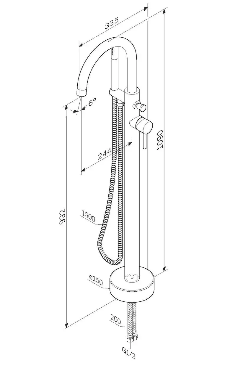 Смеситель Am.Pm Sense F7514100 для ванны и душа отдельностоящий