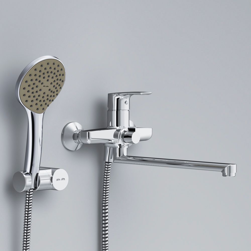 Эксклюзивная разработка: специально спроектированный для АМ.РМ керамический картридж SoftMotion 35 мм обеспечивает оптимальную регулировку температуры, а также позволяет выдерживать любые перепады давления. Точная инженерия для Вашего комфорта: благодаря обширной зоне движения ручки управлять температурой воды еще проще.В комплекте душевой набор: стильный ручной душ 120 мм 1 режим, настенный держатель с регулировкой угла наклона, душевой шланг с защитой от скручивания.