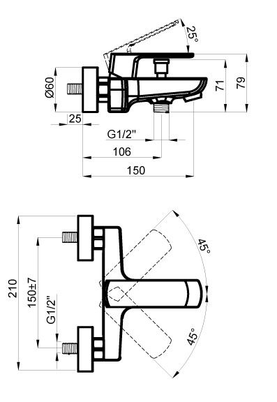 Смеситель для ванны AZARIO ATRI AZ-15960501 с коротким изливом