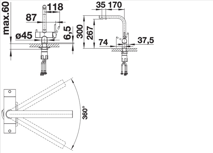 - Требуется отверстие под смеситель диаметром 35 мм