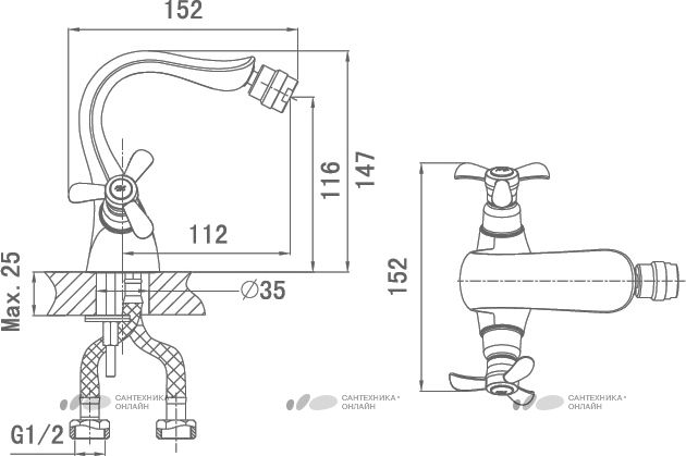 • Высота смесителя: